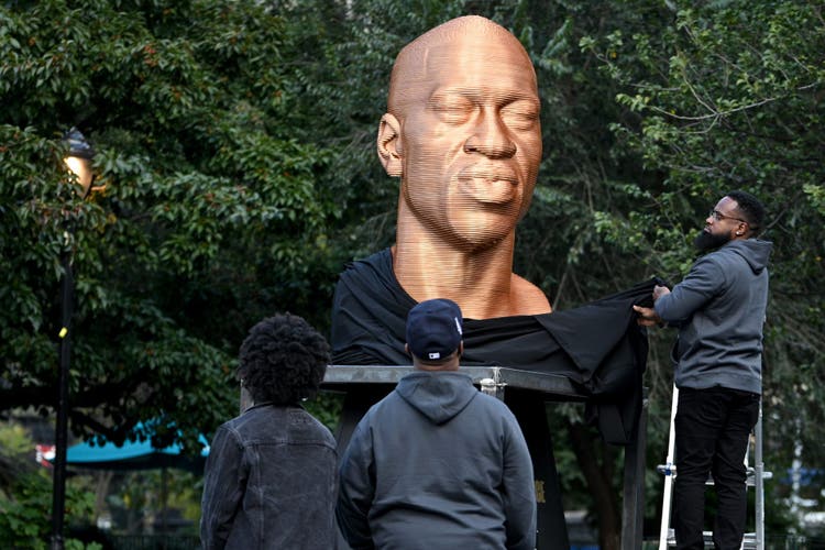 George Floyd’s memorial bust in New York City’s Union Square is well on its way to being repaired, TMZ writes. According to the outlet, a group of people came together this weekend to clean up the statue after a vandal covered it with grey paint.