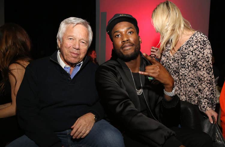 “For me, I was a motivation to them because they seen me rapping on the corner and actually come up to sometimes being at the game with [Robert] Kraft,” Meek said. “Watching the game with Kraft is a little stressful. Because it’s his team and he really puts his heart and his passion in his team. I always tell him, ‘if they lose the game, anybody can lose the game… there’s wins and losses it comes with being bosses. You got six championships,’ but that’s how much of a winner he is, he wants to win more. Me, I’m the same person to keep leveling up with my talents until I cant anymore.”