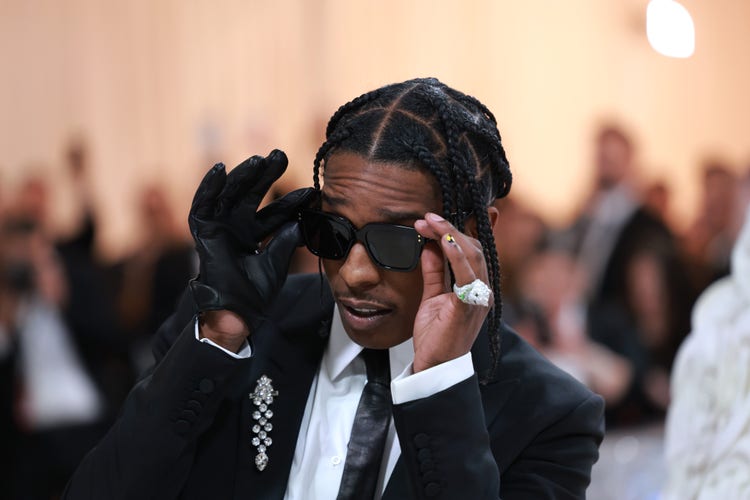 When Rocky and Rih finally made it to the Met Gala carpet, both were clad in their best tributes to fashion icon Karl Lagerfeld, whom the evening was dedicated to. The rapper channeled Lagerfeld with a suit jacket on top and plaid kilt on bottom, one of the Chanel legend’s recognizable looks.