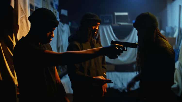 “See, somethin’ ain’t right, I can feel it in the air, my left eye just twitched twice, went to the door, saw a note on the floor, 10-day notice, they finna turn off my lights, I ain’t got no money, what I’m gon’ do now? Gotta eat to survive, I ain’t got no money, what I’m gon’ do, cry? In these streets, you’ll die, I got some demons in my head, ’cause I love my opps and they constantly bother me, and I got some homies with pounds, but we ain’t that cool, so I’m thinkin’ ’bout robbery…”