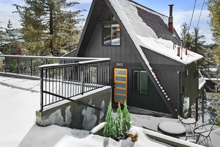 Perched on stilts and nestled in the mountains of southern California, this modern Swiss chalet blends 1970s charm with luxurious modern amenities like heated floors, a chef’s kitchen, and wall-to-wall accordion doors that open to stunning mountain views. Enjoy year-round activities from skiing and snow tubing in the winter to hiking and lake adventures in the summer, all while basking in breathtaking sunsets and epic stargazing. With cozy touches like a vintage wood fireplace, towel warmers, and high-speed WiFi, this dog-friendly cabin is the perfect retreat for comfort and tranquility.