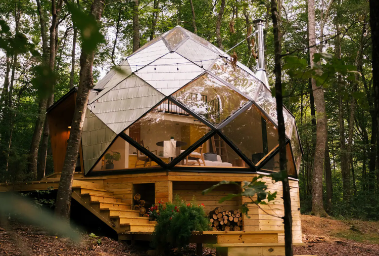 Escape to the Laurel Zome, a unique retreat surrounded by 15 acres of serene woodlands and inspired by the natural geometry of mountain laurel blossoms. Wake up to sunlight streaming through expansive windows, relax in the Koto Elements spa tub, and enjoy evenings by the firepit under the stars. Nestled at the end of a rural drive, this secluded haven offers walking access to lush trails, mossy boulders, and a seasonal waterfall, perfect for a peaceful nature getaway.