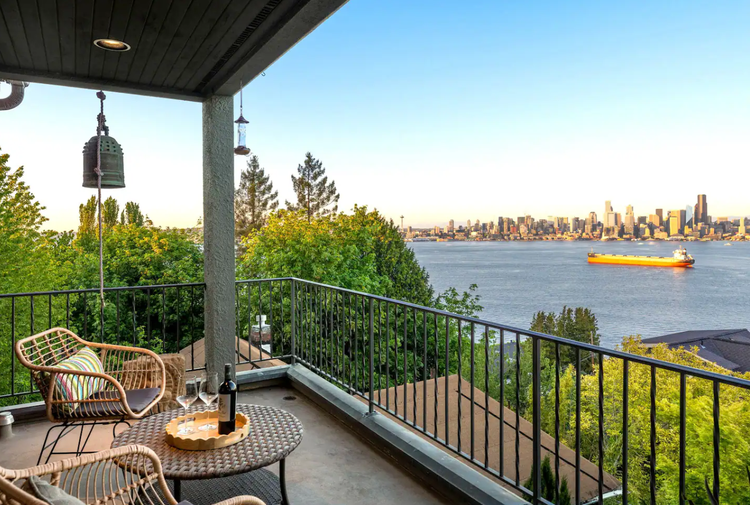 Perched on a terraced bluff, this charming Tudor-style home offers breathtaking, panoramic views of Elliott Bay, the Seattle skyline, and the Cascade mountains. With easy access to the vibrant West Seattle downtown, local dining, and outdoor activities, guests can also take a scenic ferry ride across the bay to explore the Seattle waterfront. Inside, enjoy elegant living spaces, a fully stocked kitchen, and stunning views from every room, plus a jet tub and cozy patios for relaxing moments.