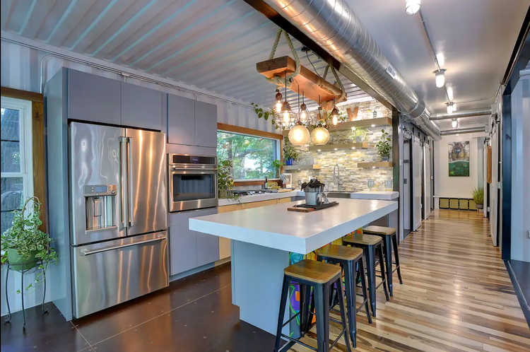 Harmony House is a stunning modern-industrial retreat nestled in a woodland canopy, perfect for romantic escapes or group getaways. This unique shipping container home features over 1,000 square feet of glass, providing breathtaking views of nature, along with elegant touches like indoor plants, art on consignment, and a relaxing hot tub. The spacious 880 sq. ft. master suite includes a walk-in wet room, while the rooftop deck offers a cozy bed swing for stargazing. With thoughtful design and luxurious amenities, Harmony House promises a serene, memorable stay.