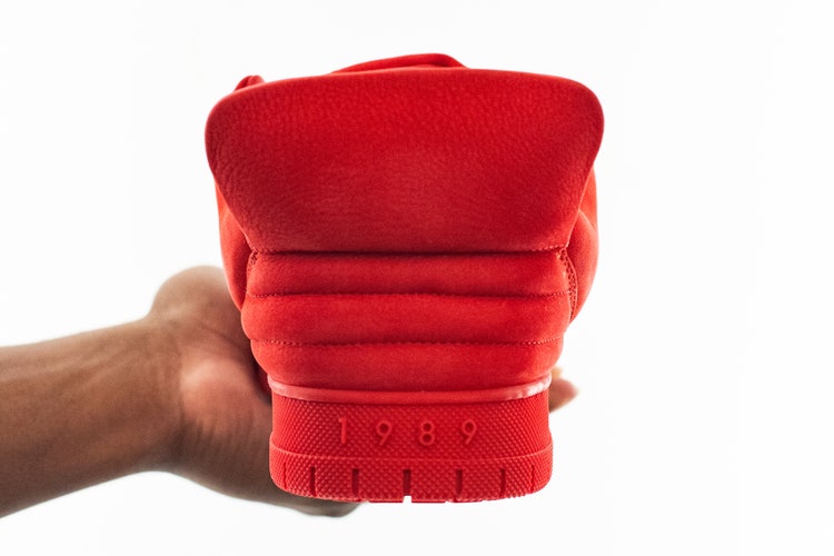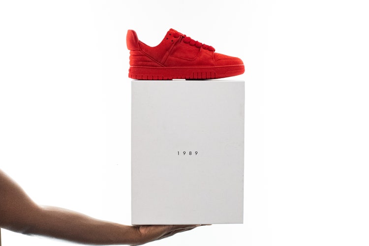 Between those details and its bold red colorway, the sneaker is completed by minimal logo branding on its tongue, back heel, outsole and a similarly white shoe box with 1989 emblazoned on the top.