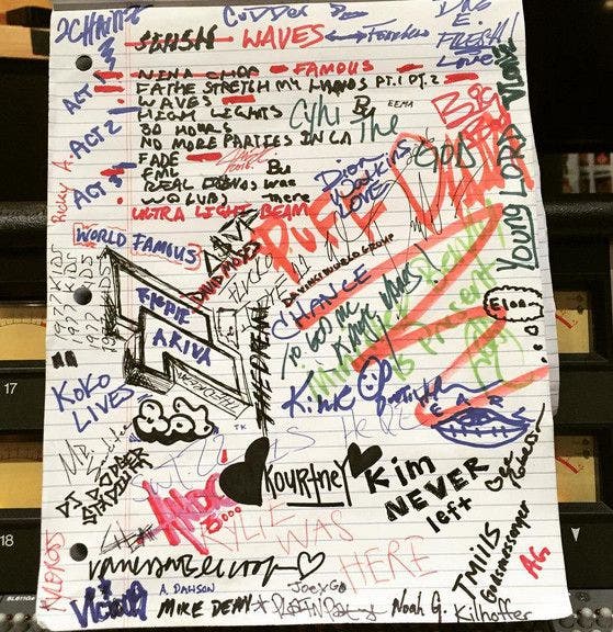 According to the latest list, the Kendrick Lamar-featured “No Parties In L.A.” has been wiped from the album, but that doesn’t mean we won’t see a K. Dot feature on there. After all, remember when Kanye updated the previous G.O.O.D. Friday freebie “Devil In A New Dress” with a now-classic Rick Ross verse for MBDTF? Or when he slid Big Sean onto the Beyoncé and Charlie Wilson featured “See Me Now”? There’s a G.O.O.D. chance that surprises will be aplenty on the new LP. But in the meantime, we have to deal with the details that are currently available. And much of these details arrive courtesy of ‘Ye’s famous notepad, which features over 40 names.