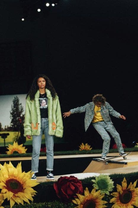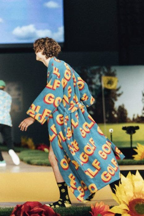From the dirt bikes, to the bedroom-styled set decorated with Kelis posters and larger-than-life book bags, to the skate ramp that wound around bright craft flowers, the noticeable thought that Tyler put into his collection didn’t stop at the stage; models walked the runway-turned-road wearing fur, terry cloth robes, and 5-panel hats splattered in polka-dot prints, making Tyler’s attention to detail very evident.