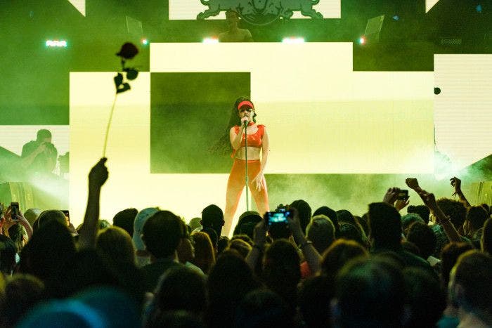 And her charming dichotomy will continue to play out over the night, on her unreleased material too. The chaotic club-made “Bounce” used thumping drums, hand claps, and grinding electronics to back her still-sweet squeaky chorus (“You’re the only one that I will ever need / When I’m with you it feels like a fantasy”); the mockery of “Taxi,” driven by a popped-bubble beat, proved to be anthemic (“Blind date on a Tuesday / bougie restaurant… / You’re playing ’21 Questions’ / Baby boy, give up / …that don’t impress me much”); and on the radio-ready “No Angel,” complete with the kind of warm electro pulses that feel euphoric on a dance floor, she wholeheartedly claims the titular phrase before editing it with: “But I can learn.”