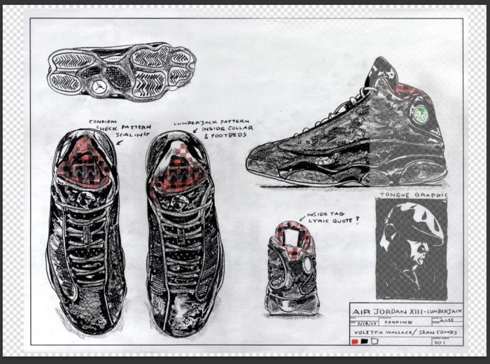 Here’s a sneak peek into the early sketches of the official The Notorious B.I.G. x Jordan sneakers out in 2017.