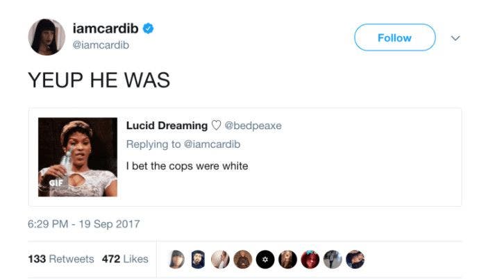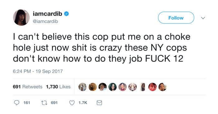 On Tuesday evening (September 19), Cardi B took to social media to reveal an altercation she’d just had with a police officer. According to a series of now-deleted tweets sent out from the Bronx rapper’s Twitter account, she was put in a choke-hold by a New York cop.