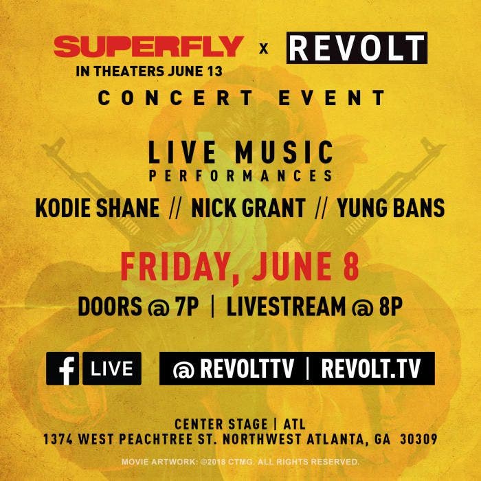 REVOLT and Superfly are teaming up to throw a special event featuring performances from Kodie Shane, Nick Grant and Yung Bans, and a panel with the film’s director, Director X, director of music videos (Drake, Rihanna), and cast members Trevor Jackson and Jason Mitchell.