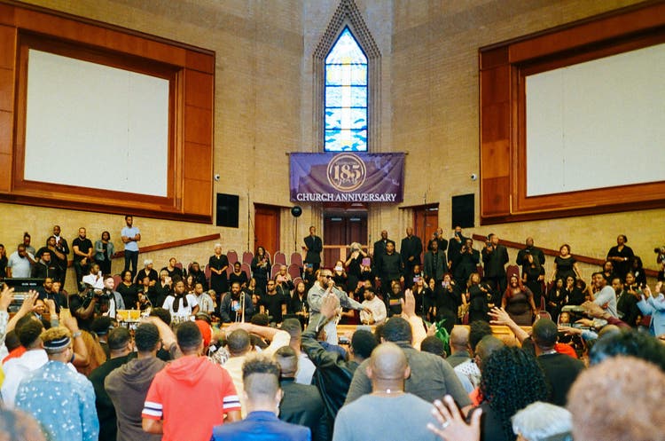 I know right now Kanye is a big topic. But, before his Sunday Service part of it happened, we went through an actual church service. You show up to the church and you see people wearing Kanye merch, which was kind of weird to me — wearing Kanye merch and T-shirts at church. Basically, Sunday Service is going to church, but the choir is talented artists singing to you.