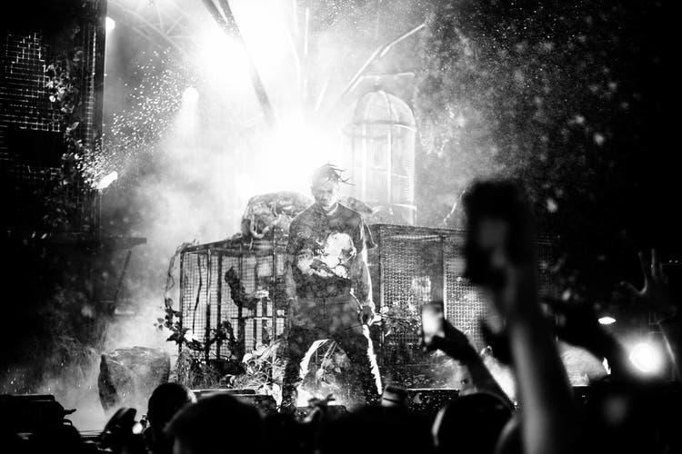 At his shows, you could be there, and it’s so pitch black [that] you don’t really see much of Travis. With time, he found ways to still keep that rawness to his shows, but have more fans involved. Now, fans are onstage moshing with him. Every single Travis show, he’s either in the crowd or walking through the crowd. The energy he gives to his fans is all about chaos and going beyond that normal concert. He basically created his own cult following.