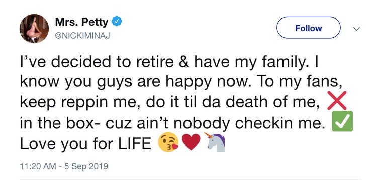 When she did her retirement, she took a break from a lot of stuff. I really can’t tell you what’s going on with new music because I don’t know. I found out about her retirement the same way everyone else did. She spoke to me afterward. We had features to finish up. We went from being in the studio every day to now I’m working on other projects.