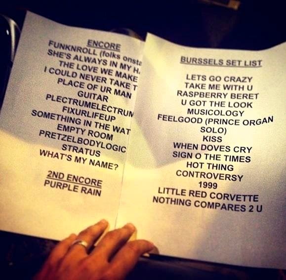 Original copy of Prince’s setlist during Hit and Run Tour (2014)