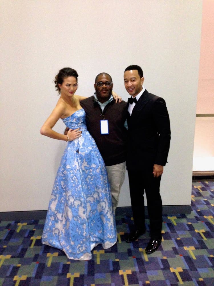 Chrissy Teigen (left), David Norman (middle), John Legend (right) at Barack Obama’s inauguration in 2013.