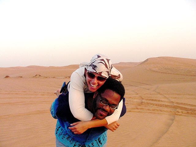 Yeah, we were in Dubai for a week before the show, so the promoter made arrangements for us to go dune buggying in the desert. He did this amazing dinner in the desert where they had belly dancers, hookah smoking, and camel rides. The promoter did it up. We stayed at this amazing hotel.