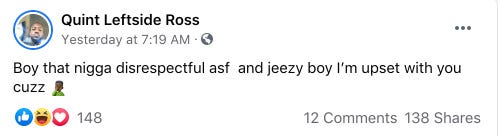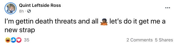 Quint “Leftside” Ross, Pookie Loc’s son, took to Facebook to share that he’s been targeted by social media trolls following the competition. “I’m gettin death threats and all,” Ross wrote. “Let’s do it. Get me a new strap.”