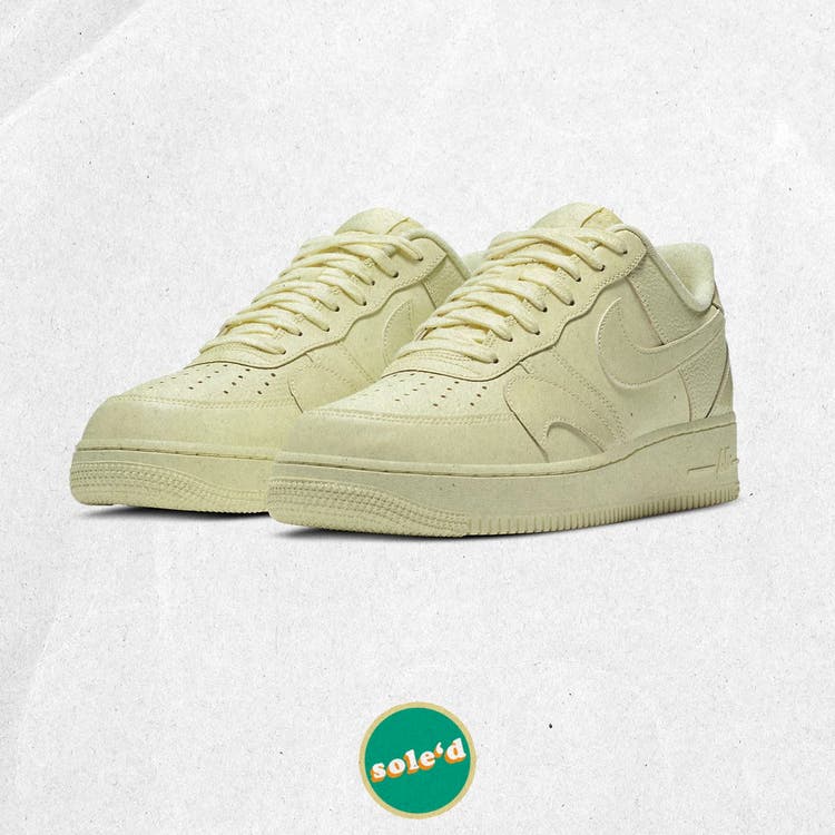 The Nike Air Force One, Misplaced Swoosh, in the butter colorway. Now, when I first saw these, the original colorway was black, but with kind of an oil slick colorway on the swoosh. It was cool. It kind of just made me feel like they were playing off of the DIY vibe that people did at ComplexCon, which is cool, but it’s not as unique when everybody is buying the same shoe.
