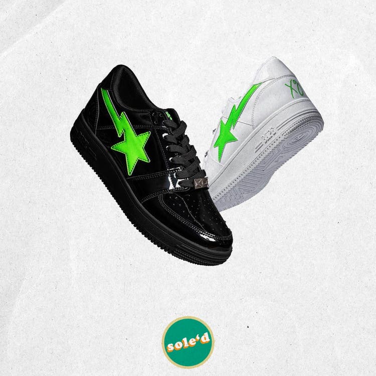 Now look, a lot of people do not like Bapes like that. Probably, like me, they had some bad experiences and ended up with fakes. But, I’m just a diehard Bape fan, and especially when you get a collaboration, of course, at this level between The Weeknd but a patent leather with this lime slime green, is just perfection for me.