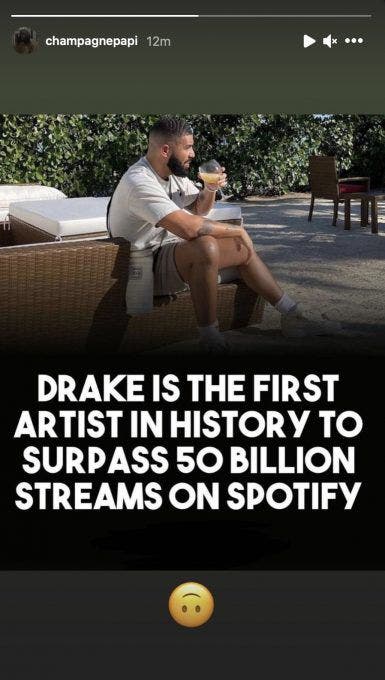 On Sunday (Jan. 17), Twitter account Chart Data tweeted about Drizzy’s latest accomplishment. The 50 billion streams include every song that the OVO Sound founder is credited on. Later on in the day, Drake himself hit up his Instagram Story to react to the news. In his post, the Toronto rapper included a screenshot of a graphic featuring him sipping on a drink with the headline under him.