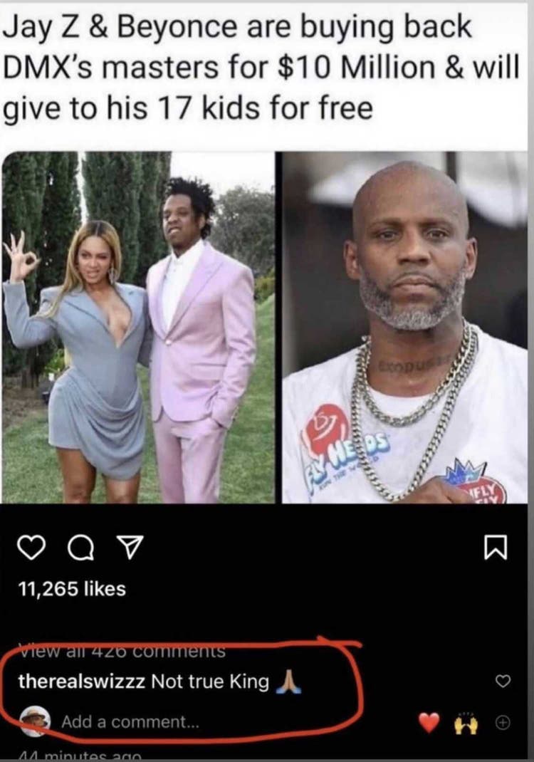 Following the tragic passing of the “X Gon’ Give It To Ya” emcee, an unnamed source began to circulate an article about The Carters’ alleged purchase. The title of the article read, “JAY-Z & Beyoncé are buying back DMX’s masters for $10 million & will give to his 17 kids for free.” The piece spread across social media like wildfire, although there was no real source to confirm the claims. However, Swizz, who was close friends with X, took to Instagram to refute those rumors.