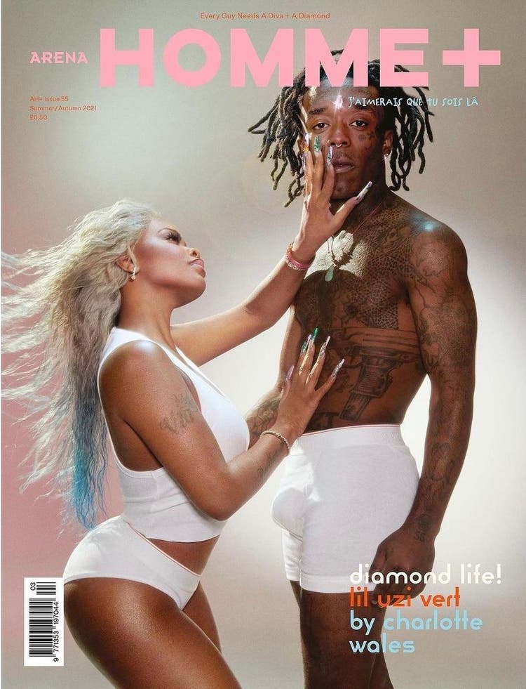 Lil Uzi Vert and JT grace the cover of Arena Homme +’s latest issue. The men’s fashion magazine placed the hip hop couple on the cover of its summer/autumn 2021 edition. The miniature cover line reads “every guy needs a diva + a diamond.”