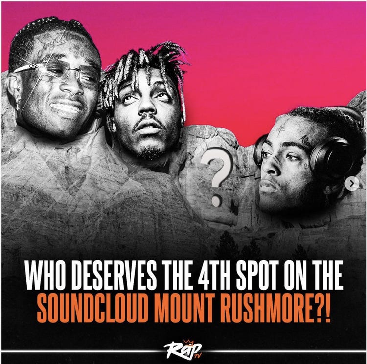 Over the weekend, RapTV posted a photo that featured Juice WRLD, Lil Uzi Vert and XXXTentacion. A question on the image posed the following question: “Who deserves the 4th spot on the Soundcloud Mount Rushmore?”