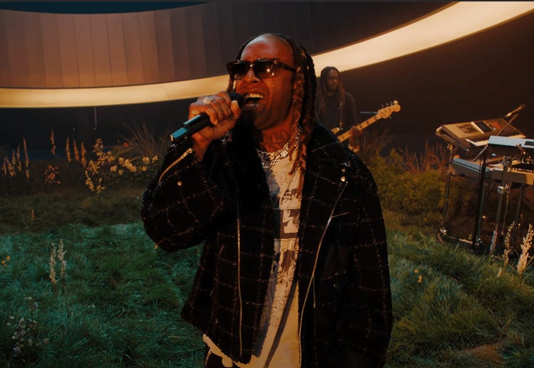 Back in October, Ariana recruited Ty Dolla $ign for the seventh track from her sixth studio album, positions. Their “safety net” collab marked the first collaboration between the two artists, and now the pop sensation presents a live performance video series for fans to enjoy a beautiful new rendition of the song. In the stunning new visual, the two are surrounded by an ethereal background of greenery, providing Ty with a fantasy world-looking back drop as he delivers his verse: