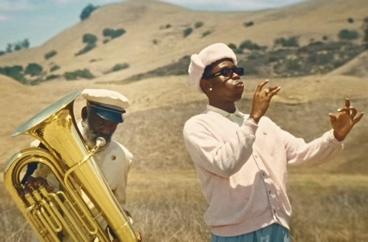 The “LEMONHEAD” video opens up with Tyler giving an impromptu tuba lesson, and then switches to scenes of him going for a joyride in a huge boat. “LEMONHEAD” is the third track off Tyler, the Creator’s aforementioned seventh studio album, Call Me If You Get Lost.
