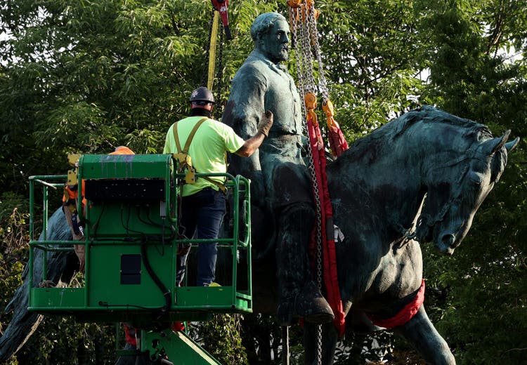 Zyahna Bryant, the Black woman who started a petition to remove the statue of Lee in 2016, called Saturday’s events both “bitter” and “sweet.” In an op-ed for Teen Vogue, the budding activist wrote, “I am proud and trying to force myself to do the hard thing: to feel and be present in the moment, living the same story as so many other Black women and femmes. It’s a story of being forced to feel guilty for celebrating the wins, no matter how big or small they are, a story of having those wins belittled or contextualized as only the beginning,” she wrote. “Black women who have been invested in changing the physical landscapes of our communities are the same people investing time, energy, and resources into the longer strategic and systemic movements to dismantle the underlying systems that these monuments represent. We understand that the statues are not the end, because they were never our beginning.”