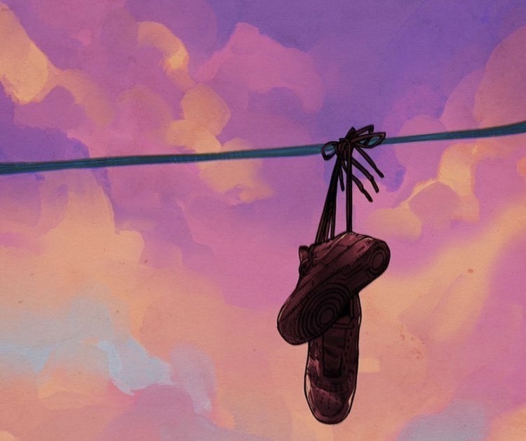 Along with the release, Sylvan took some time to give a bit of explanation behind his cover art choice. “The black air forces represent all the anger, all the frustration, and all the depression I’ve held along with me,” he types. But although the symbolism seems dark, it actually represents a new beginning. “They say when sneakers go up on a pole line, it symbolizes a death. And this very much is death. A death of holding onto childhood trauma.”