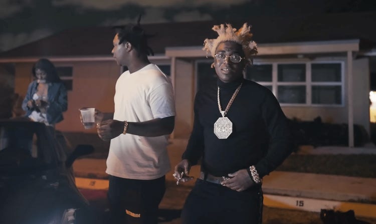 Shot by Killer Black, the video sees Kodak Black making a visit to his hometown of Pompano Beach, hanging with his crew in different locations around the Golden Acres apartment complex. The buildings are juxtaposed with the current ingredients of a rich man’s lifestyle — fly jewelry, high-end cars, beautiful women, and more.