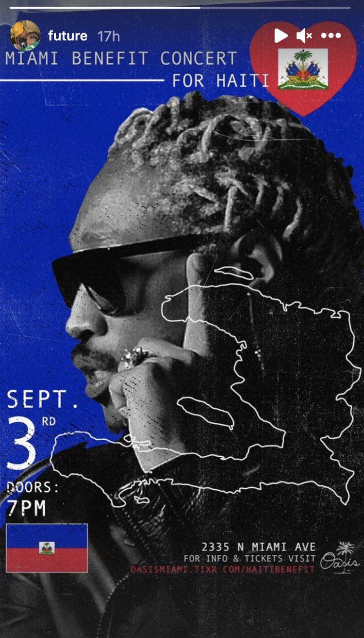 Future is stepping in to help Haitians who were affected by the deadly earthquake that hit the country earlier this month. According to a recent Instagram post, the emcee will be hosting a Haitian benefit concert that is slated to go on Sept. 3 at the Oasis Wynwood in Miami. There is no word on how long the concert will be or if any other artists will be hitting the stage alongside the Atlanta rapper.