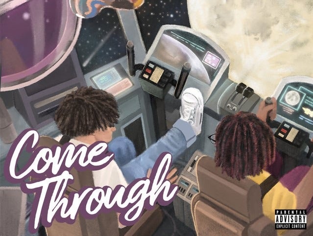 I’m like, “Baby, come through,” it’s a spaceship, I got stars in the roof/ Knew me in the past and now you say I’m brand new, feelin’ like a don when I’m off the ‘42/ Bring a couple friends with you, baby, come through, I’m like, “Baby, come through, baby, come through, baby, come through, ”baby, come through, baby, come through, baby, come through