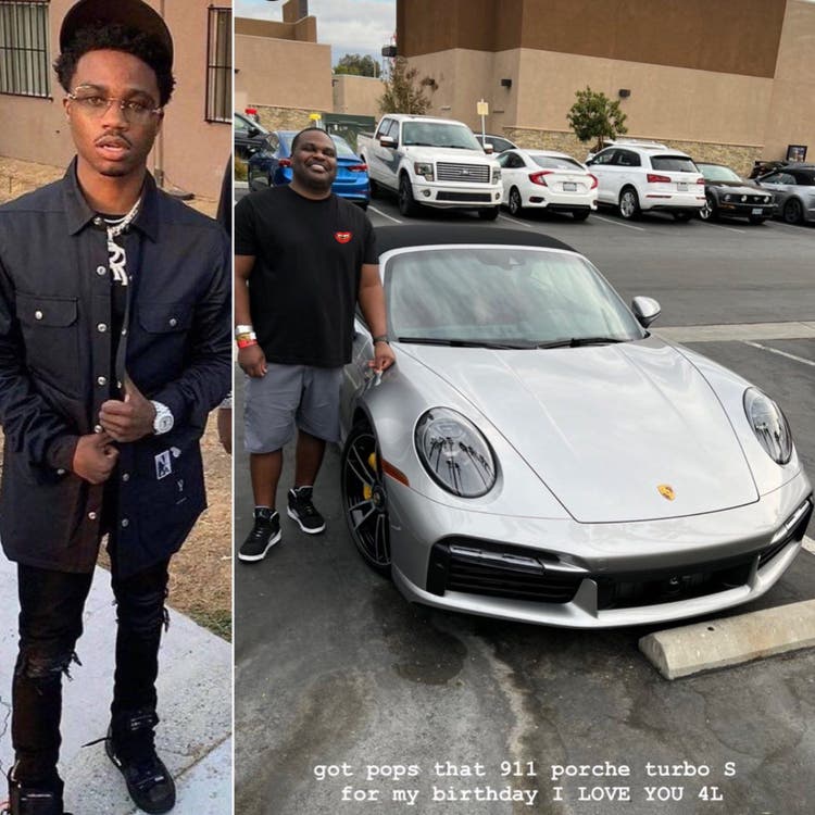 “Got pops that 911 Porche Turbo S for my birthday. I LOVE YOU 4L,” he wrote. Alongside the caption was a picture of his father posing next to his silver foreign.