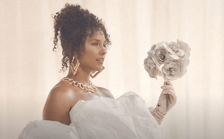 The accompanying visual for “Best of Me” begins with a beautiful shot of Alicia Keys in a white room wearing what almost looks like a wedding dress, holding a bouquet of flowers made from sheet music. Things then center around her undying bond with husband Swizz Beatz, with shots of the couple being affectionate in different locations — in a bar, on a terrace within their magnificent residence, on the beach, and even with their children. Relationship goals, indeed.