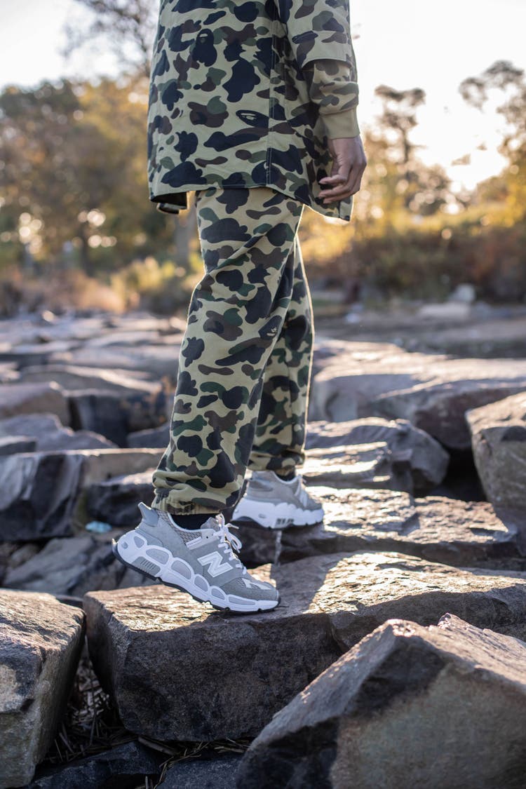 Inspired by Salehe’s love of hiking and the desire to be outdoors, this pair delivered in tonal grey features mesh and suede throughout the upper construction that looks almost brushed. It also features his name by the tongue and a reflective “N” on its side, while the upper construction sits atop a white base with Abzorb and Rollbar technology. In another nod to outdoor activities, at the heel of the shoe, is a whistle. Yes, you read that right, a whistle!