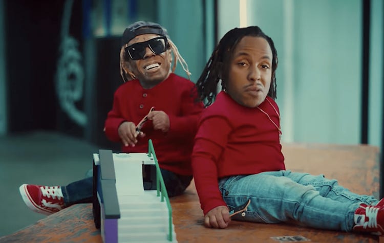 Directed by Mooch, the accompanying clip for “Trust Fund” sees the artists in a skate park, posted up on a color-changing Lamborghini Urus while skaters of all ages shred around them. Viewers can also see animated versions of Wayne, Rich, & Co., shots of the two in toddler form, and more.