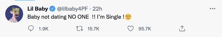 “Baby not dating NO ONE!! I’m Single!” he wrote.