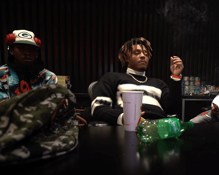Courtesy of Steve Cannon and Grade A Films comes a clip that shows footage of Juice WRLD performing the track in the studio. Meanwhile, that’s interspersed with people trying to escape what looks like an apocalypse — complete with astroids bringing down skyscrapers, volcanos drowning civilization in lava, and Earth imploding at the video’s end.
