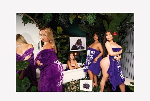 I stay fresh, I look flyer than a eagle do, stay floss, flex like John Cena do/ I feel like I’m King Kong walkin’ in Veneta boots with a group of bitches I just met, I don’t need no dudes/ I just got a pint of Hi-Tech, I don’t need no juice