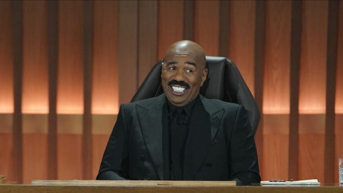 After taking a deep breath, the “Family Feud” host answered with, “Man, that’s a hard one. You know, I’ve given away two daughters, man, and I got four. That’s a really hard one. I would have to say … so far … um … yeah, yeah … naw, naw.” After delivering that hilarious response, the television veteran took a sip of what looked like an alcoholic beverage.