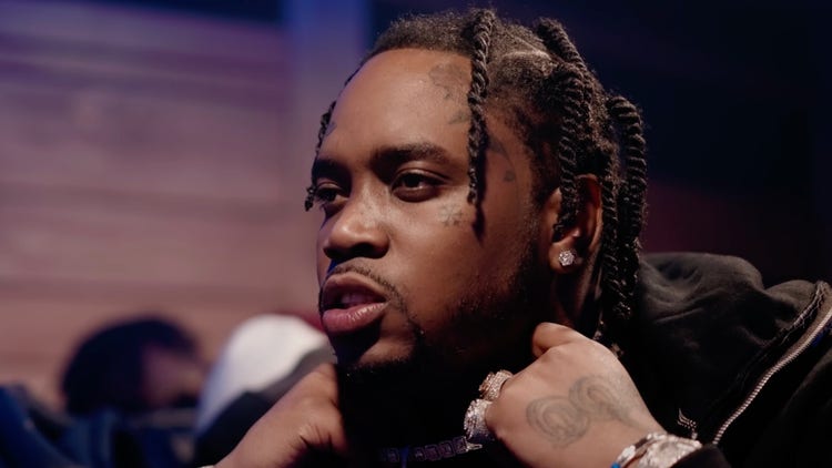 “I don’t want a shooter for nothin’, huh, yeah, all my shooters is huntin’, yeah, he act like an opp, if I tell him the word, he’ll die from a move of a button, he was cool when I was broke, why we ain’t cool when I’m stuntin’? Look, if it’s a witness, I don’t shoot him, I snuff him, fuck you thinkin’, a nigga stupid or something? The way I was brought up, huh, we don’t like him, that nigga get tored up…”