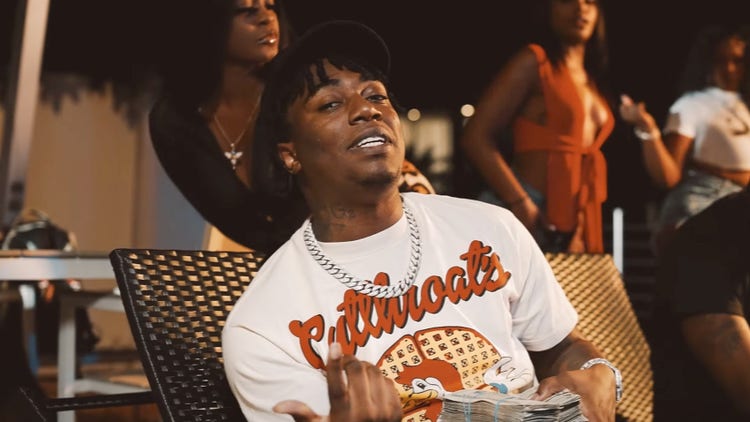 “I been poppin’ Addies ’cause them Perkys had me stuck, bitin’ on my tongue, I been rollin’ like a truck, got a bitch up out the hood, she’ll take it in the butt, bitch, it’s 2022 and I still don’t give a fuck, oh, I got youngins in the B tryna bleed some, I got hoes on my line, bitch, do you need somethin’? I keep bitches on they knees like they need somethin’ … R.I.P. to Soulja Slim, I’m with them soldiers, stripper bitch like Cardi B, I’ll fuck her for thе culture…”