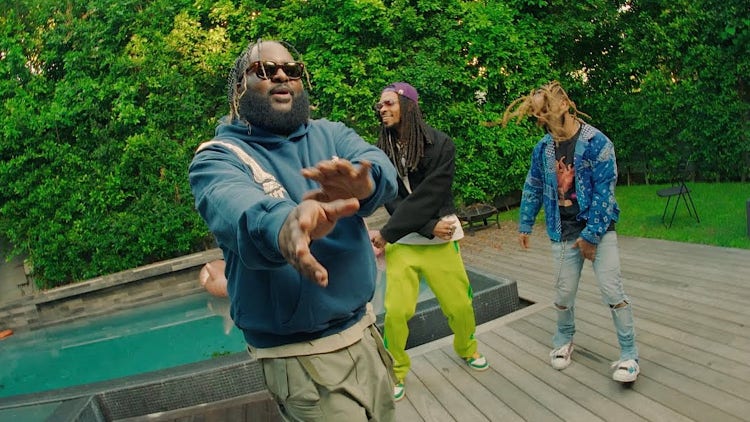 “Slug on my neck like aqua, plug and connect like Wi-Fi, sippin’ codeine out the Fanta, mixin’ that lean like tie-dye, fuck a nigga bitch like, haha, gun on my hip like fye-fye, my whip an old school artifact, my bitch yellow like Kyla Pratt, fuck a lil’ bitch like cardio, takin’ mushrooms like Mario, water on my neck like Fiji, takin’ mushrooms, Luigi, 10-1-10 my barrio, sendin’ them pies like Domino, pack disappear, Houdini, pack get done like Wa-Pa, sippin’ that syrup like ah-ha, movin’ them birds like Popeye’s…”