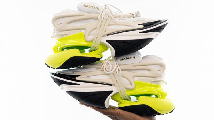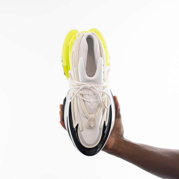 Balmain — whose Creative Director Olivier Rousteing made history when, at 24, he became the French brand’s youngest and only Black creative director ever — has always been known for its distinct silhouettes and attention to detail. Their footwear division has followed suit, and under Head of Footwear Design Safa Sahin, the Unicorns were born. The Unicorns are a perfect example of maximizing the design process and creating new shapes with the future in mind. With its unique soles designed for maximum cushioning and suspension, plus its graphic cut-outs, you’re bound to turn heads.