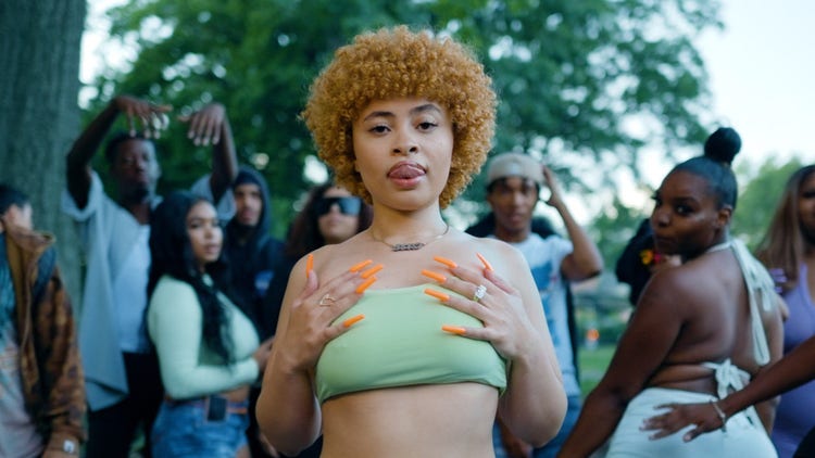 Courtesy of George Buford comes a matching visual for the RIOTUSA-produced cut. In the short clip, viewers can see Spice Ice dancing with a mob of friends and supporters in different locations around her Bronx stomping grounds, including at a park, in front of Paya Deli, and during a photoshoot.