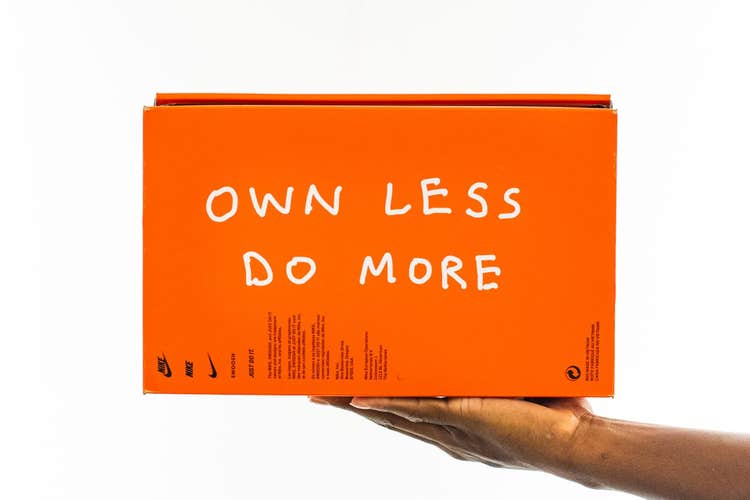 You can also find Tom Sachs branding on the interior sides of the tongues, while Nike branding can be found on the insoles, heels and tongues. The bright orange hue also extends to the informative sneaker box, which features an oversized Swoosh with a scribbled line throughout it and the phrase “Own Less Do More,” amongst other insights that are up to the wearer to discover.