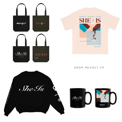 But wait, there’s more! Not only will REVOLT be premiering this new batch of “She Is” episodes, but we will have accompanying merch to match – literally! That’s right. The REVOLT Shop will be dropping limited edition “She Is” tote bags, shirts, mugs, and hoodies. Plus, when you buy something in the collection for a special woman in your life – or yourself – a portion of your dollars will go to a great cause.